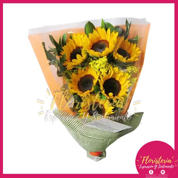 En Floristería Expresión & Sentimiento encontraras los mejores detalles para regalar en cualquier momento para esa persona que amas. Hermosos ramos florales con envíos gratis en la zona urbana de Villavicencio. | Bouquet con Girasoles