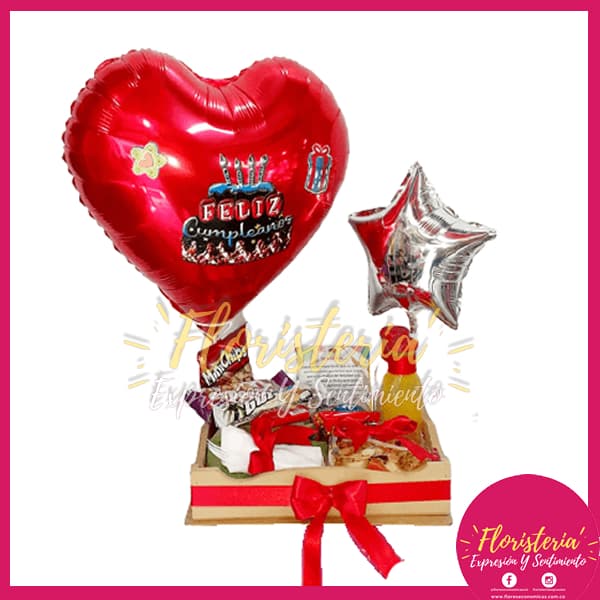 En Floristería Expresión & Sentimiento encontraras los mejores detalles para regalar en cualquier momento para esa persona que amas. Hermosos ramos florales con envíos gratis en la zona urbana de Villavicencio. | Desayuno Sorpresa Globo de Corazón