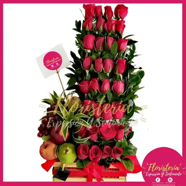 - Ramo Tradicional en Rosas Escalera | Frutas