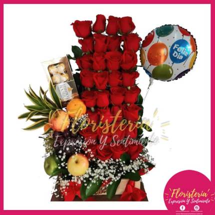 Arreglo Corazón con Peluche, Frutas, Chocolates Ferrero, 2 Cervezas Corona