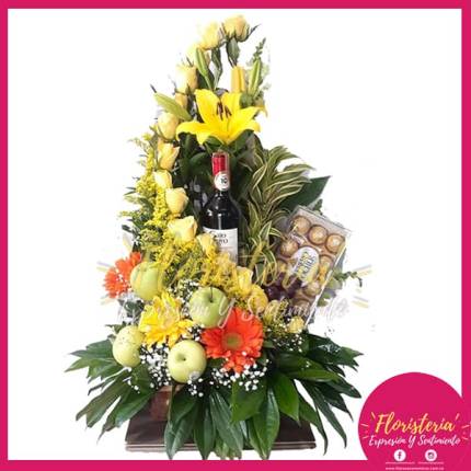 Canasta en Escalera Rosas Rojas y Frutas